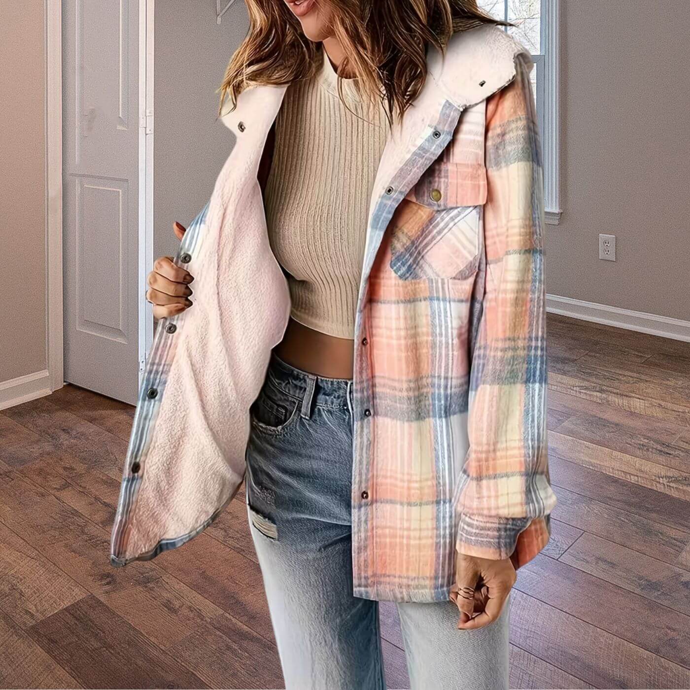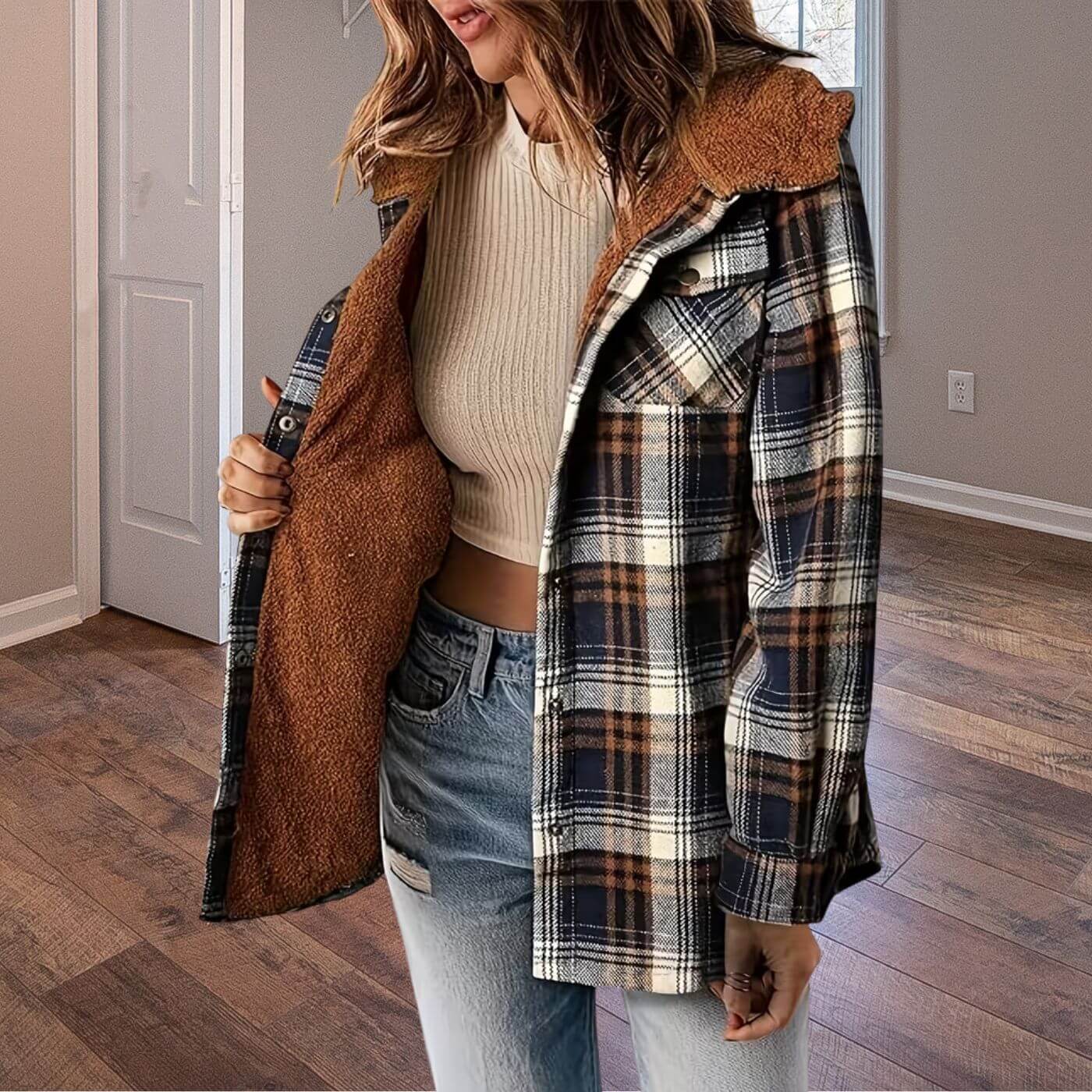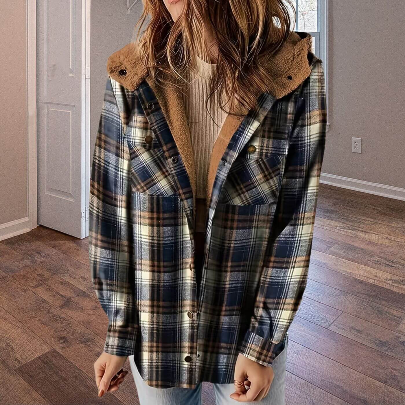 Bergithe™ – Fôret Vinterjakke med Hette og Rutemønster
