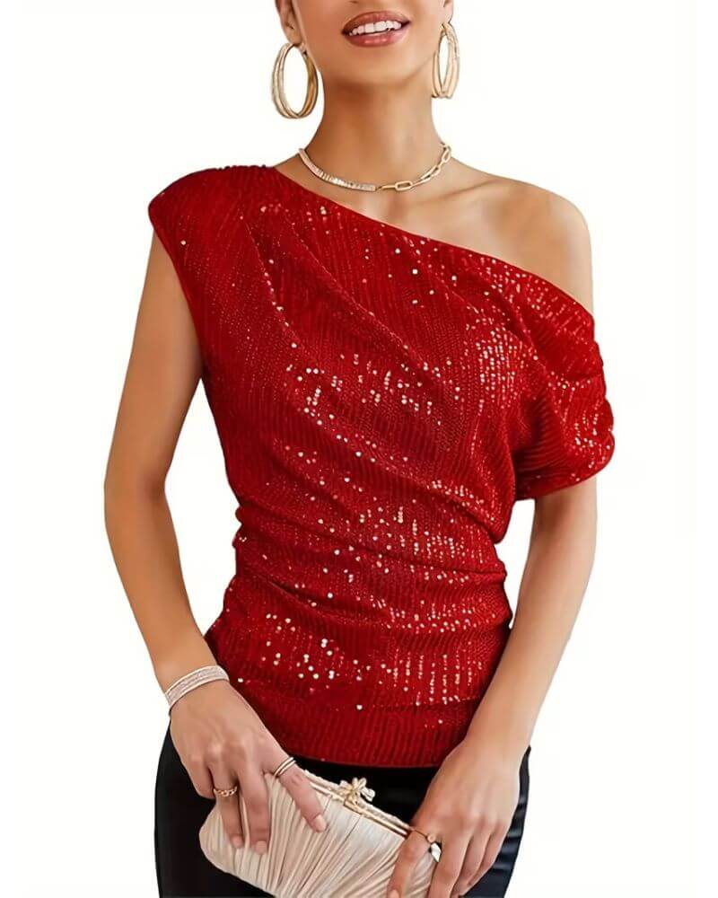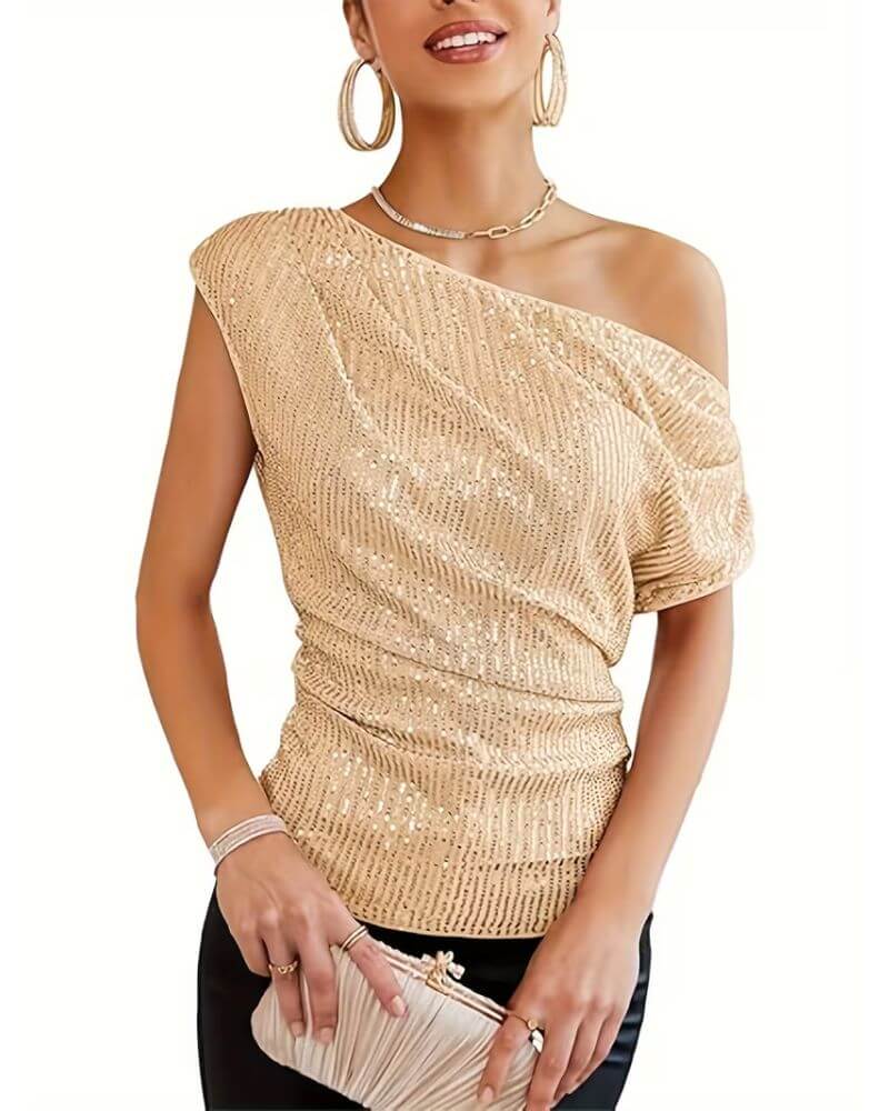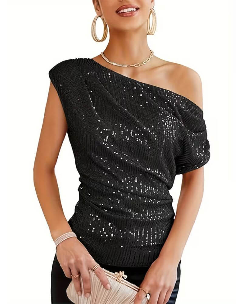 Iselin™ – Paljettopp med én skulder