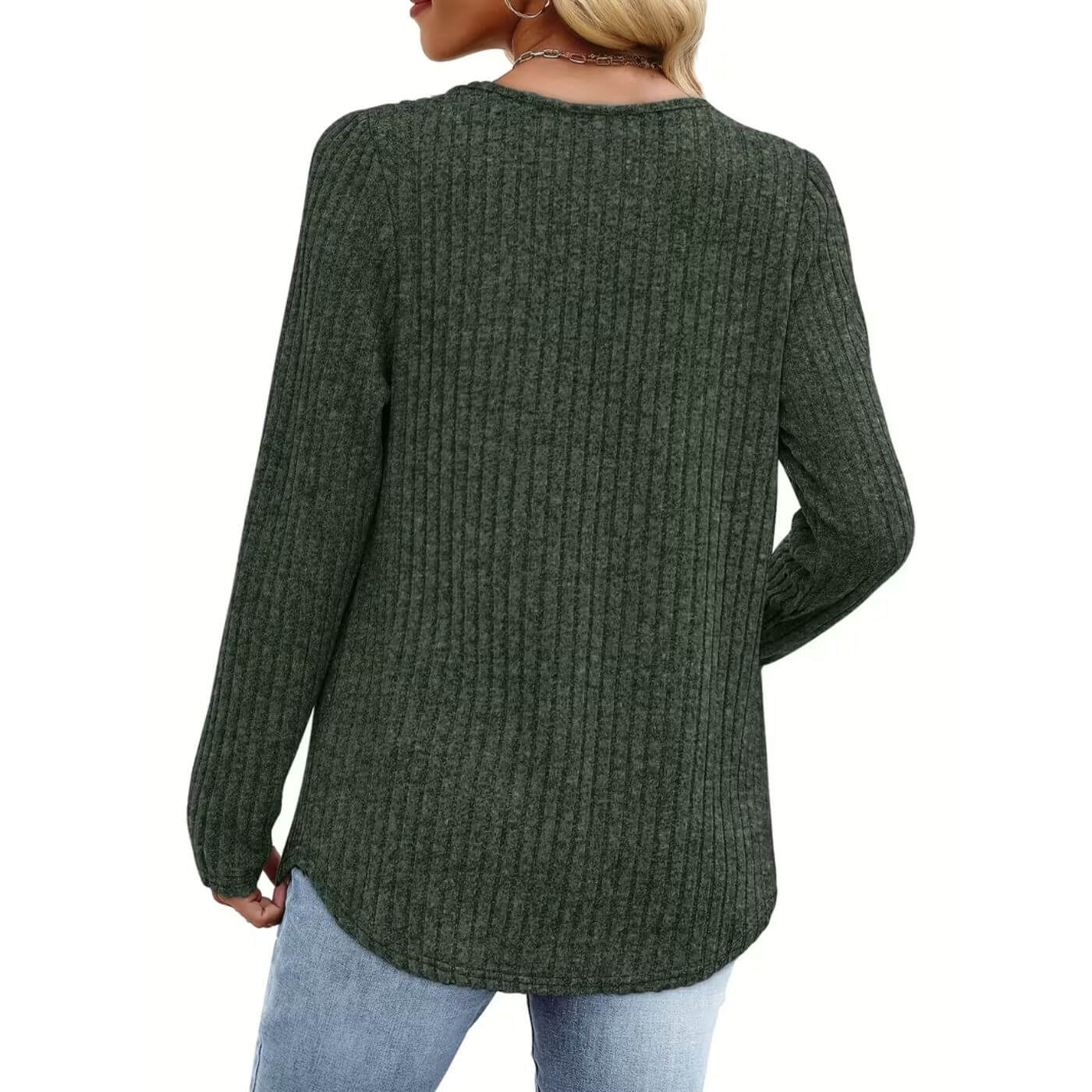 Flatterende V-utringning: Den myke V-utringningen fremhever kragebeinet på en fin måte og gir et feminint preg uten at det føles for pyntet. Den balanserer den løse passformen og gir et naturlig, avslappet uttrykk.