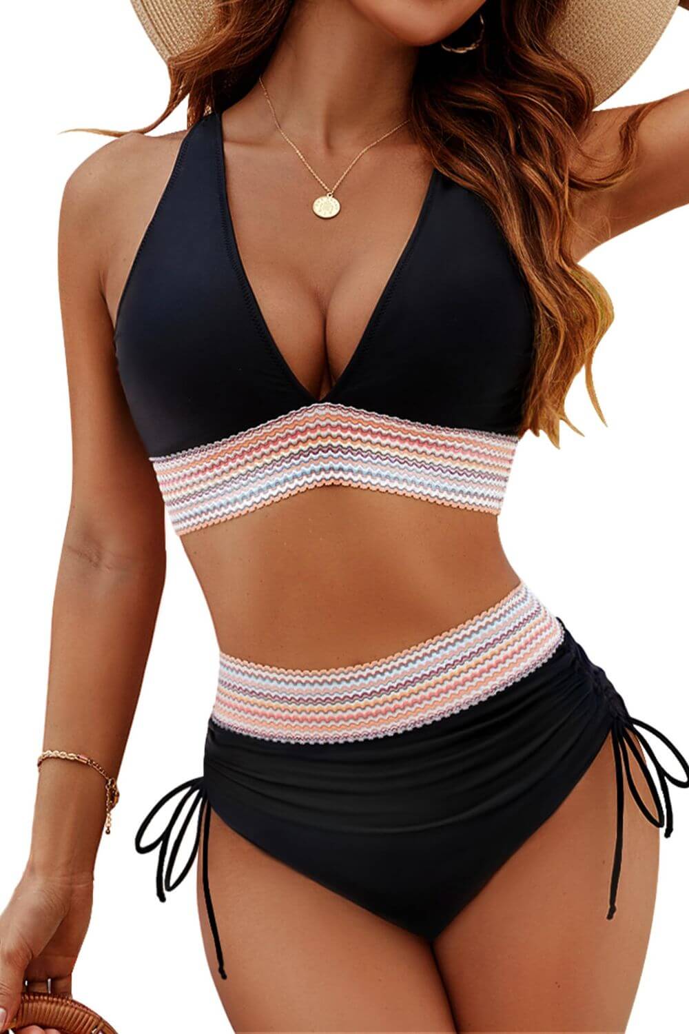 Moderne snitt med riktig dekning: Den dype utringningen gir et flatterende uttrykk, mens underdelen gir balansert dekning. Du kan bevege deg, sitte og svømme uten å måtte justere bikinien hele tiden.