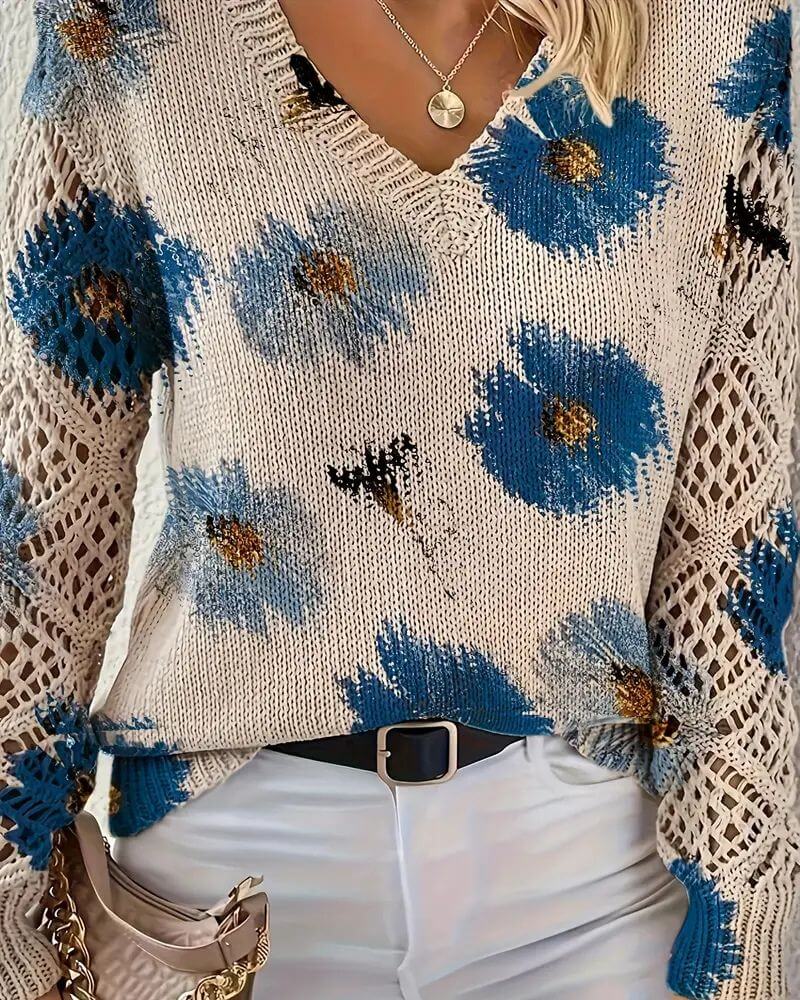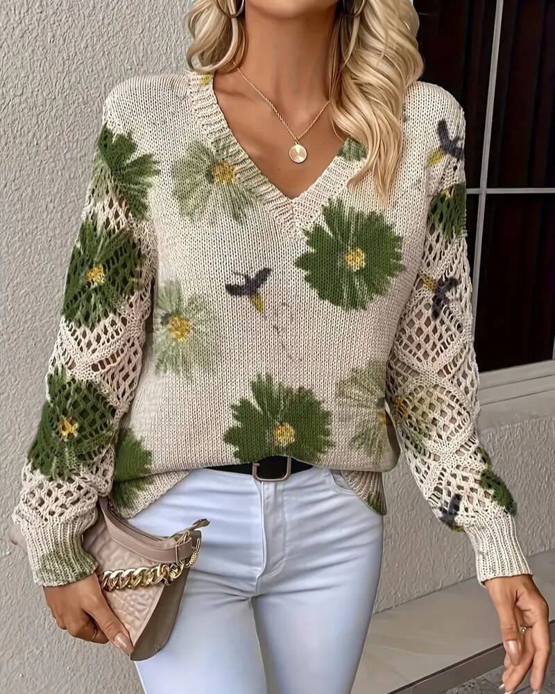 Ulrika™ - Elegant Blomstrete Strikkegenser