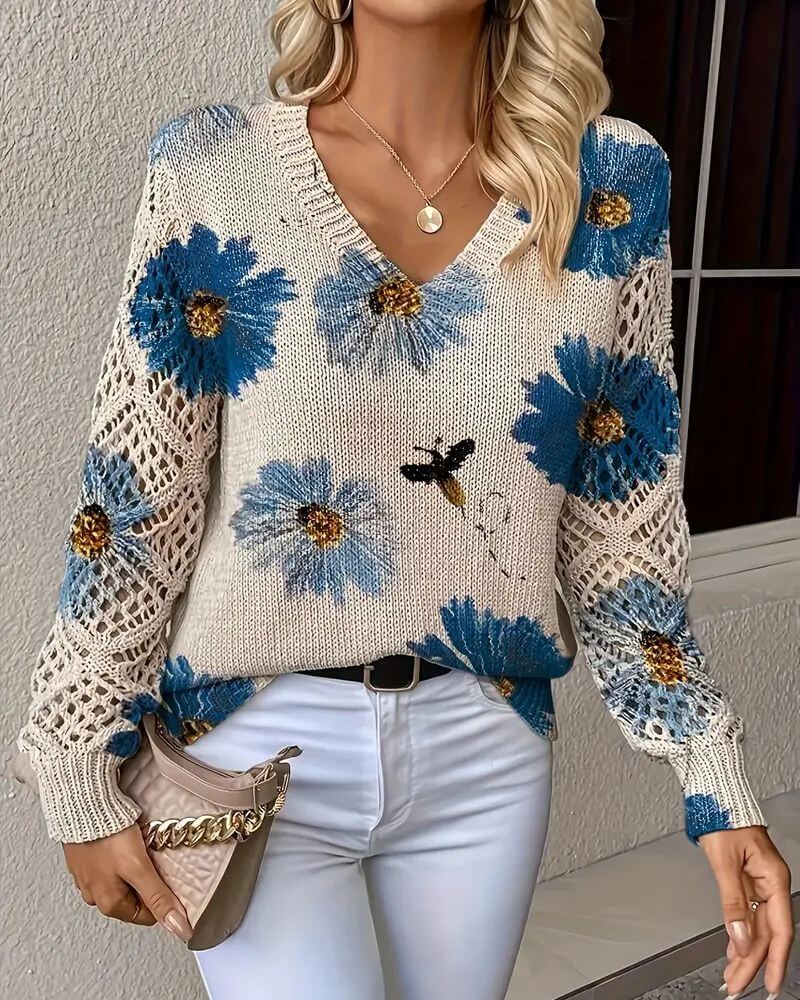 Ulrika™ - Elegant Blomstrete Strikkegenser