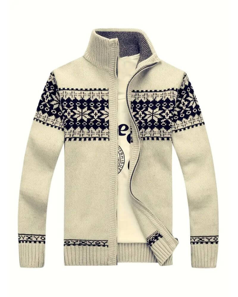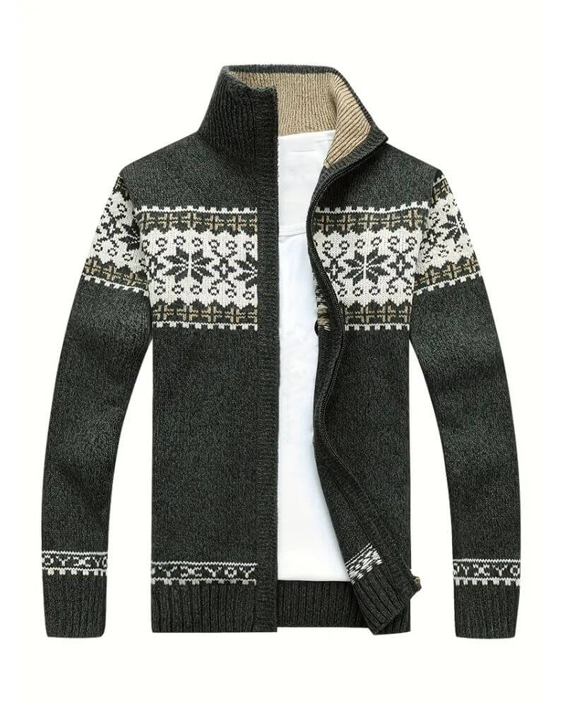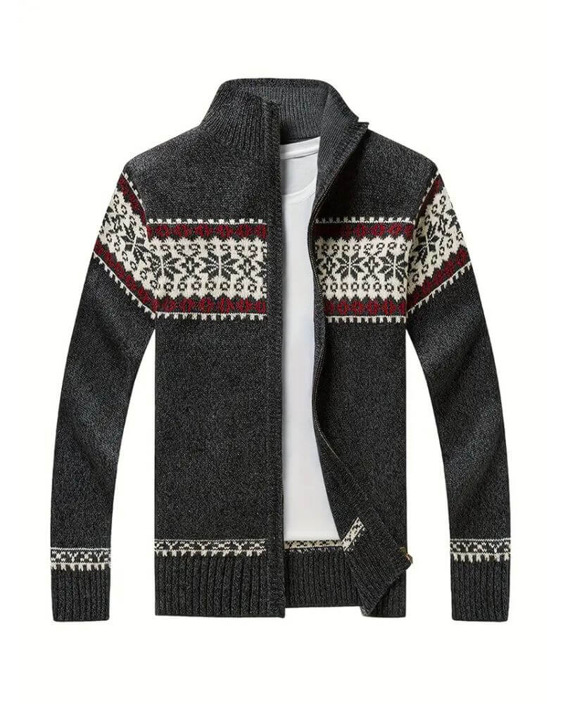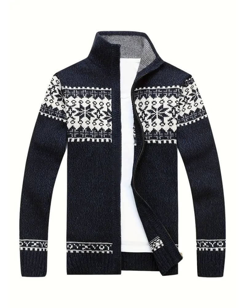 Carsten™ – Uformell Strikkejakke med Snøfnuggmønster