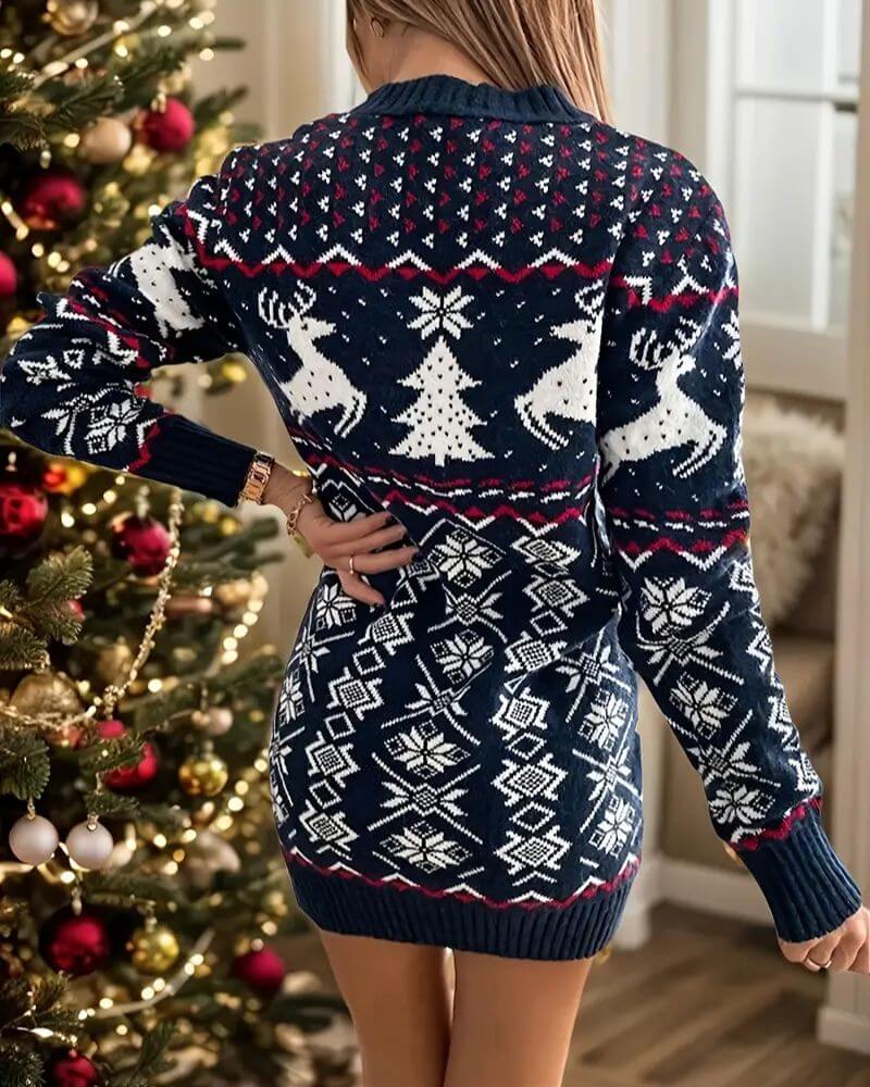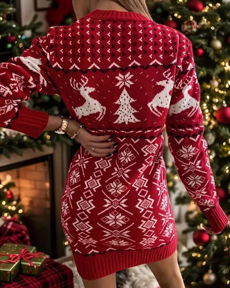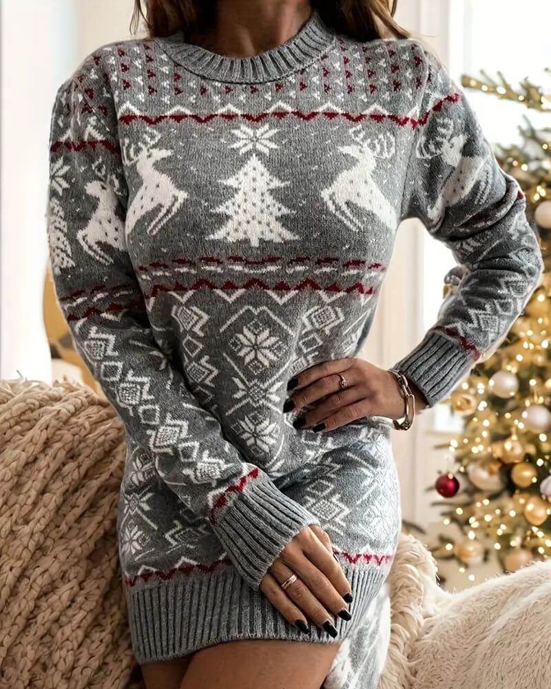 Denne koselige julekjolen er laget for å hjelpe deg å nyte hver eneste høytidsstund uten å føle deg stiv eller ukomfortabel. Den gir en flatterende passform samtidig som den holder deg avslappet gjennom travle sammenkomster, middager og feiringer. Du får et varmt og julete uttrykk som føles mykt, behagelig og lett å bruke hele dagen.